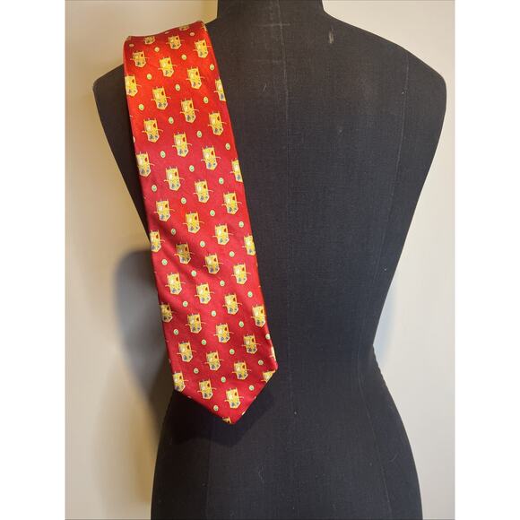The tie's vintage nature makes it a unique find, and its high-quality material ensures that it will last for years to come. Its brand, department, and type make it a versatile accessory that can be worn with a variety of outfits. Don't miss your chance to own this rare piece of history.