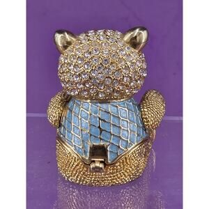Faberge Collection Teddy Bear Jewelry Trinket Box Blue Enamel Clear Crystals 2”