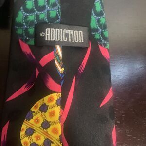 Elevate your style with this designer Faberge Egg Addiction polyester neck tie. The multicolor tie features a unique egg pattern and is perfect for any occasion. Made from 100% polyester, the tie is durable and easy to care for. Measuring 4 inches in width, it is a great addition to any man's wardrobe. Ideal for those who want to stand out from the crowd, this tie is sure to turn heads.
