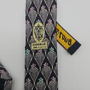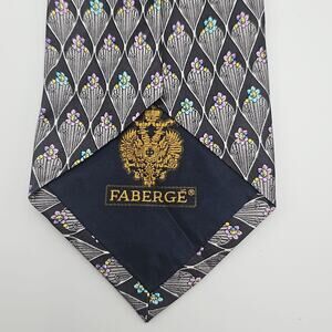 Elevate your wardrobe with this exquisite Faberge long tie! Featuring a sophisticated blue and pink floral motif with ornate silver accents, this tie exudes elegance and style.