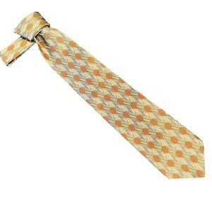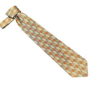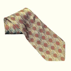Faberge Red and Gold Silk Neck Tie with black starburst pattern crisscrossed with red filled gold egg. Handmade in the USA . In excellent condition