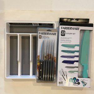 Faberware Color Series 23 pce. Cutlery Set measuring cups/spoons/spatulas/knives, Drawer Organizer, & Steak Knife Set