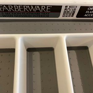 Designed to organize your flatware drawer, this 5-section organizer from Farberware features a rubber lining to keep things from sliding around.