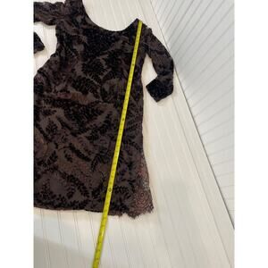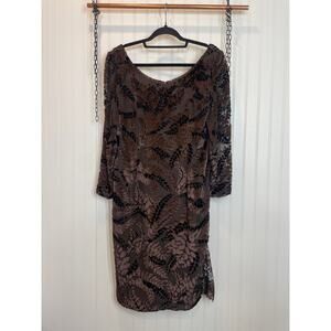 Fabian Molina Brown Leaf Textured & Lace Insert Midi Shift Dress Size M