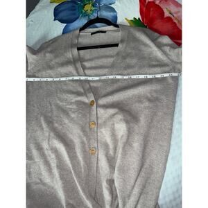 Fabiana Filippi 100% Cashmere Cardigan w/ Leather Trim – Beige – Size M