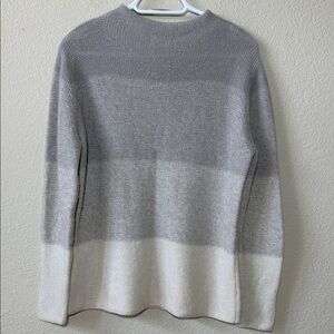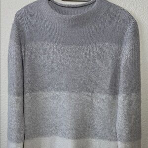 Elevate your wardrobe with this elegant gray and cream sweater. Perfect for layering and adding a touch of sophistication to any outfit.