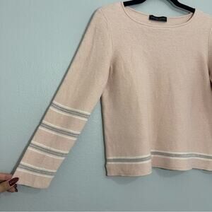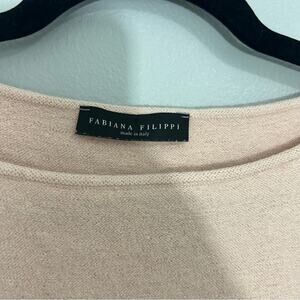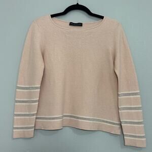 Fabiana Filippi Metallic Embellished Striped Knit Sweater in Blush Pink Size 46