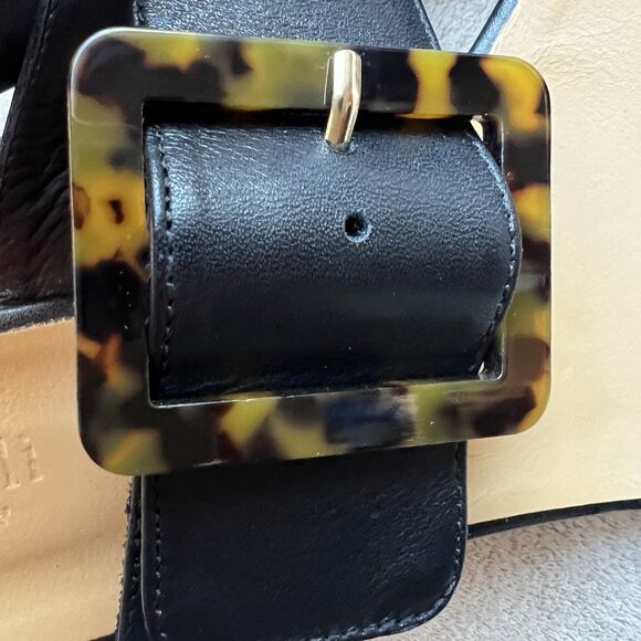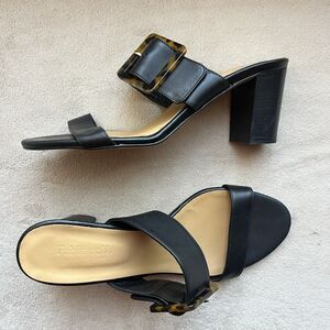 Fabianelli Black Leather Block Heel Sandals Women 10 Two Bands Tortoise Buckle