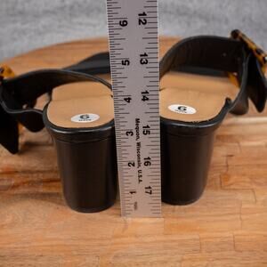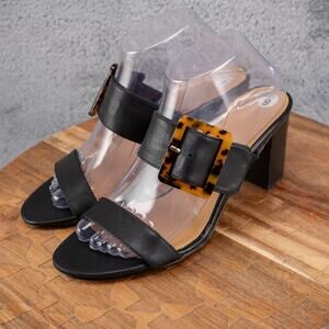 Fabianelli Black Leather Block Heel Sandals Women 9 Two Bands Tortoise Buckle