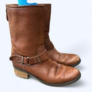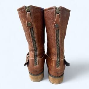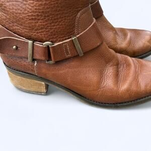 Gorgeous Fabianelli Made in Italy brown leather moto boots. These zip up the back, have a low wooden heel, and a harness/belt detail. These are in very good preowned condition. They have some normal light wear on the leather and sole. Women's European size 40.