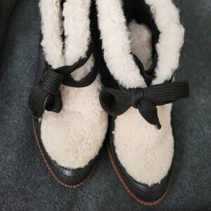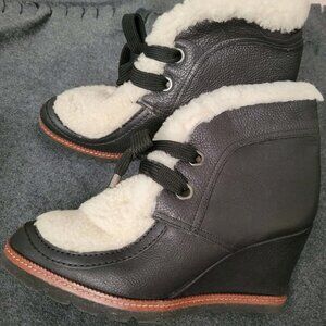 Fabianelli Made in Italy Size 40 Black Leather Lace Up Wedge Ankle Booties