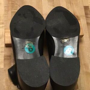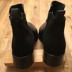 Fabianelli Made in Italy black leather pointy toe side zip suede heel, 1.5” block heel boots. Size 8.