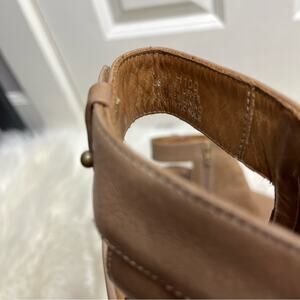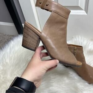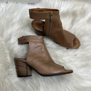 Fabianelli Open Toe Side Zip Brown Leather Ankle Booties Size 37