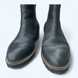 Fabianelli Made in Italy women's black leather lug sole Chelsea ankle boots in a size 38. These boots are in very good preowned condition. They have been worn just enough to make them soft and broken in. European size 38.