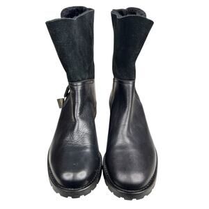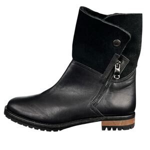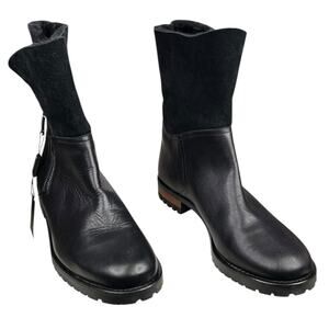 Fabianelli Women’s Black Leather Faux Fur Side Zip Ankle Boot Size 8