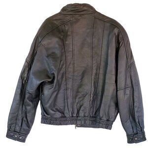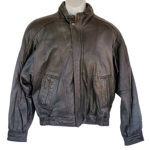 Fabiani Leather Jacket Men's M Black Pockets Full Zip Lined Shoulder Pads