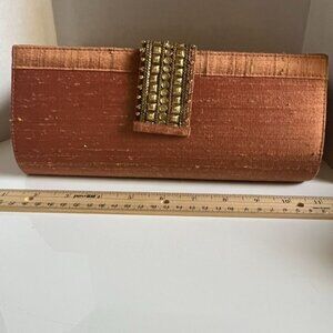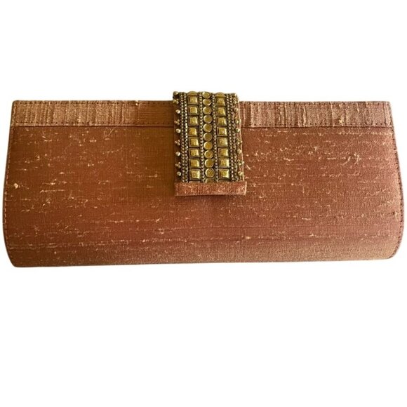 Fabindia Bronze Silk Evening Clutch With Embellished Clasp Exotic Elegant