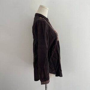 Fabindia Embroidered Cotton Tunic Top | Dark Brown | Womens Size Medium