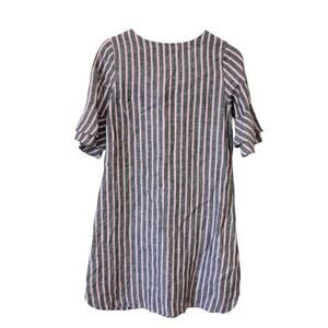 Fabindia Linen Shift Dress Pink Gray XS Ruffle Flare Sleeve Normcore Lagenlook