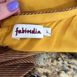 Fabindia Mustard Color Organza Sleeve Tie Neck Top Size L