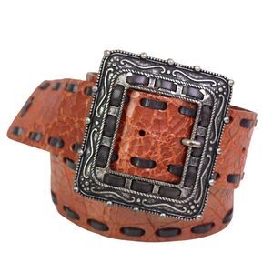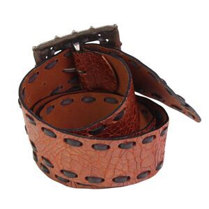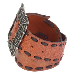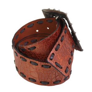 Fabio Corti CRACKLE BRONZE REAL LEATHER 2"Wd STITCH CORSET WOMEN BELT Sz XL (A60