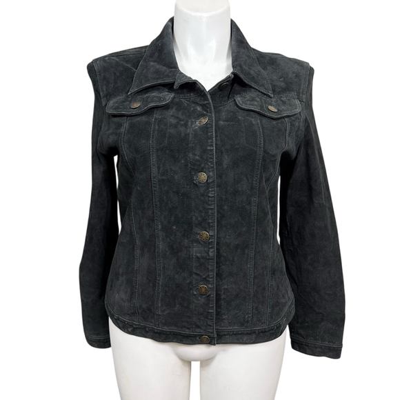 Fabio Womens Y2K Black Genuine Leather Button Front Jacket Size Large