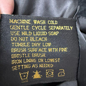 This pre-owned Fabio women’s Y2K-era leather jacket is crafted from 100% genuine leather in a washed black finish, featuring a button-front closure, structured paneling, and chest flap pockets with button accents. The tailored silhouette and slightly cropped Y2K cut pair well with denim, cargos, or layered looks. The women’s size large jacket is in good condition and does show signs that it would benefit from professional leather cleaning, which has been reflected in the price. Fully lined in polyester for comfortable wear.