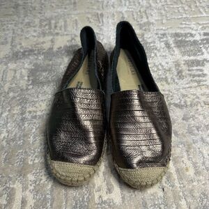 Fabiola’s Boho Genuine Leather Slate Grey Slip On Espadrille Flats