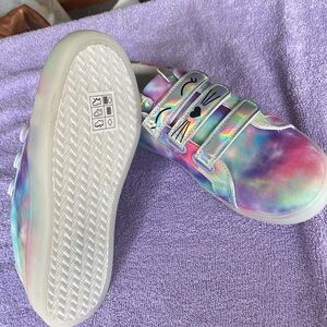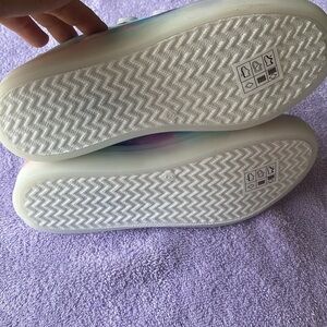Brighten up playtime with these colorful kids' light-up sneakers. Featuring a fun mix of pink, blue, and purple, these shoes are perfect for adding a splash of color to any outfit. The playful design and comfortable fit make them a favorite for active kids. Velcro.