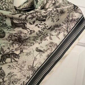 This gorgeous scarf is in the running for one of my all time favorite Fable designs. This design is just incredibly detailed and interesting. New with tags. Size is 27 inches x 27 inches