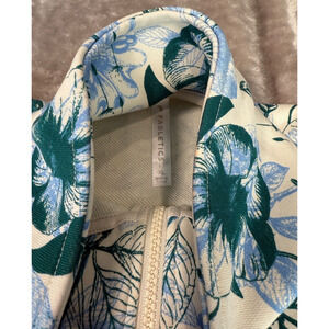 Fabletics 1/4 Zip Blue Green Floral Mock Neck Cropped Sweatshirt Womens XL Excellent condition - see pictures for measurements