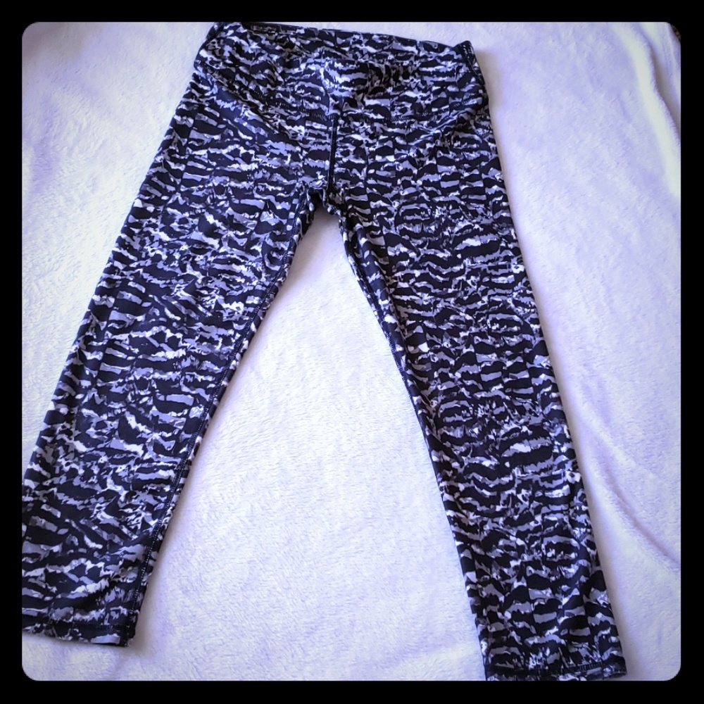 Black/white/gray leggings, worn 3 times, tag cut, XS, and very comfortable.