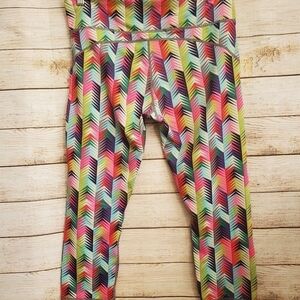 Fabletics multi colored capri workout leggings. Athleisure wear.