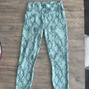 Fabletics PowerHold High-Waisted Leggings in a stylish sage green snakeskin print. Designed for maximum compression and support during high-intensity workouts.