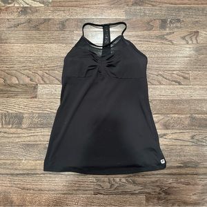 This pretty little performance tank with flattering tucked details at the bust also packs in the technology with moisture-control features, power mesh inserts and a built-in shelf bra.