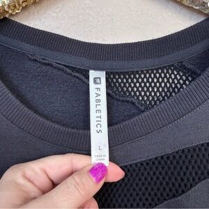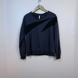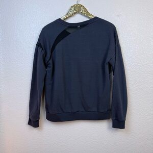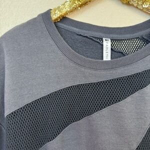Details: A go-to sweatshirt that can be worn outside your bedroom walls. Slip into a pullover to get you to-and-from the gym when the temps drop. Its mesh design demands a bold bra or tank underneath. Dark gray. Fabric 55% Cotton/40% Modal/5% Elastane/Mesh:100% Cotton. Size L. Excellent Preowned Condition.