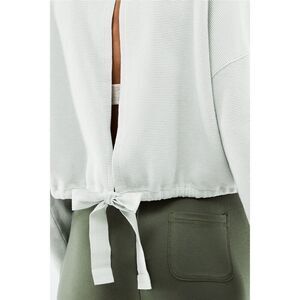 tie-back sweatshirt made with a textured waffle fabric. It features a drawcord that goes around your entire waist—to cinch or let out as you please.