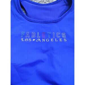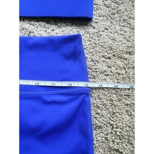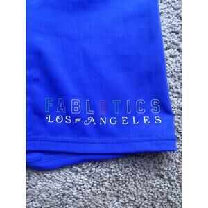 Get ready to turn heads with this stunning Fabletics set! This set includes the Los Angeles Trinity Sports Bra and Motion365+ Biker Shorts in a beautiful blue color. The shorts have a 6-inch inseam, perfect for any workout or casual day out.