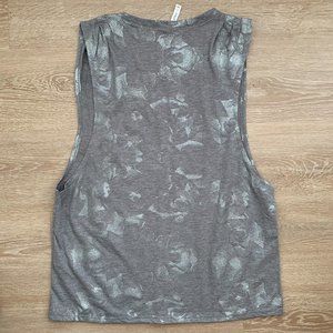 Fabletics Athletic Tank Top Open Arm Women's Size L Gray Silvery Floral Detail