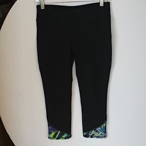 Fabletics Athletic Yoga Cropped Leggings hidden pocket abstract multicolor hems