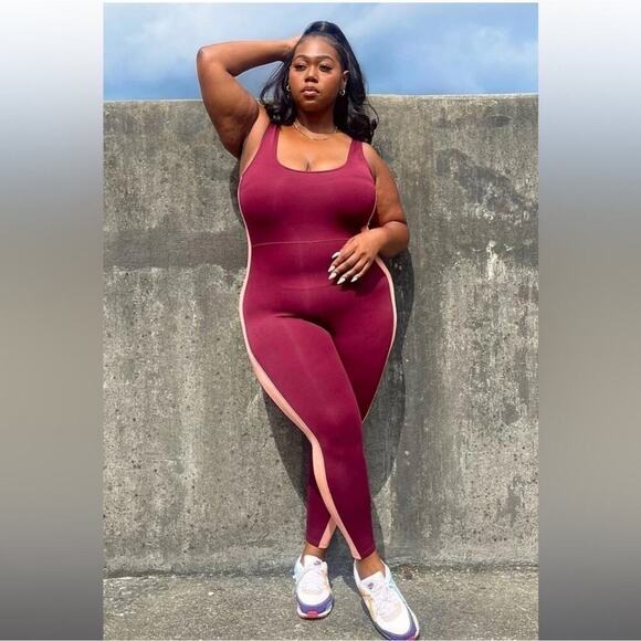 Fabletics Atlantis Scuba 7/8 Onesie Jumpsuit Romper in size XXL. Maroon and pink color.