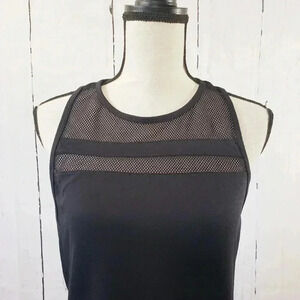 Excellent used condition. Fabletics Bianca Tunic Tank in black. Mesh details on bottom hem as well as top and racerback area. Size XS