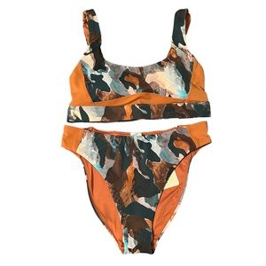 Top: Scoop Back Swim Bra. Size S. Paintbrush Cameo/Sequoia in print/color.