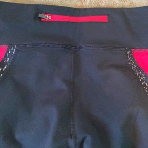 Fabletics Black Knee Length Back Zip Pocket Pattern Detail Active Leggings Small