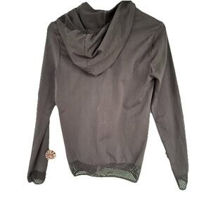 Fabletics Black Megan Seamless Pullover Hooded Activewear Mesh Trim Top Medium