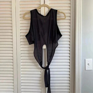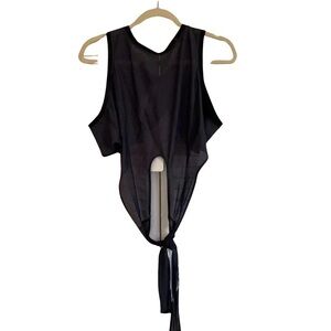 Fabletics Black Mesh Workout Crop Tank Top Tie Back Fit To Body Size Large