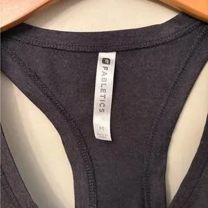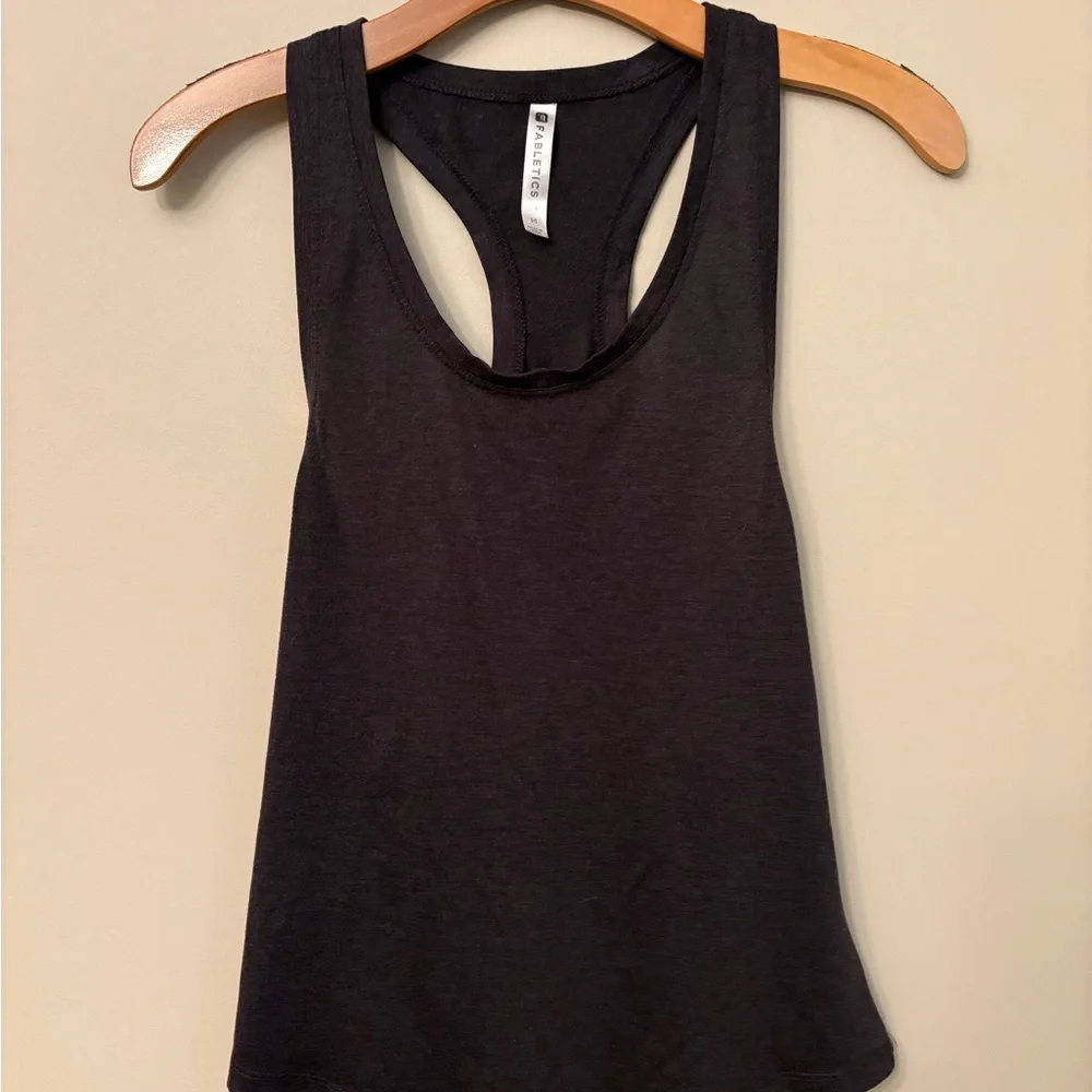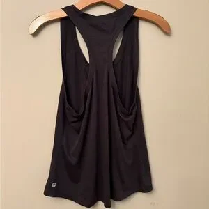 Sleek black tank with a racerback style. Perfect for gym or casual outings.