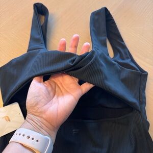 Fabletics Black Ribbed Square-Neck Tank