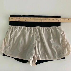 Fabletics Black with Semi Sheer Overlay Short with Black Tights Small