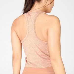 Fabletics Blake Tank Top Crop Loose Fit Moisture Wicking Knit Fabric in Desert Heather.